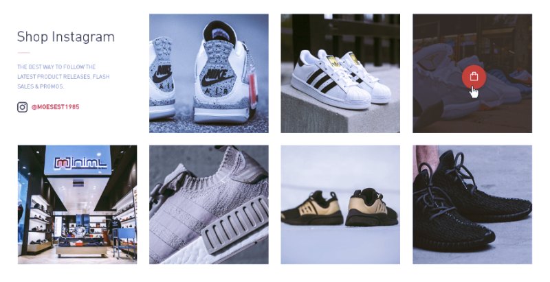 من الاتجاهات الصاعدة الأخرى الإعلان عن هذه المنشورات على موقعك الإلكتروني. يُظهر المثال في الصورة أعلاه معاينةً لمنشورات إنستغرام المتاحة للشراء على الموقع. في حين أن منشورات التواصل الاجتماعي القابلة للشراء تزيد من مبيعات المتابعين، فإن الإعلان عنها على موقعك الإلكتروني يشجع أيضًا عملاءك الأوفياء على متابعتك على منصات التواصل الاجتماعي.