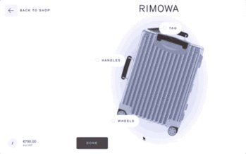 هذه التقنية فعالة مع إكسسوارات الموضة كالنظارات الشمسية، لكنها مفيدة أيضًا بشكل خاص للأثاث وديكورات المنازل. مع ذلك، يمكن لتقنيات الواقع المعزز والواقع الافتراضي والتصوير ثلاثي الأبعاد أن تُحسّن المنتجات من خلال منح المتسوقين تحكمًا أكبر في خيارات المشاهدة (حتى بالنسبة للأمتعة مثل ريموا).