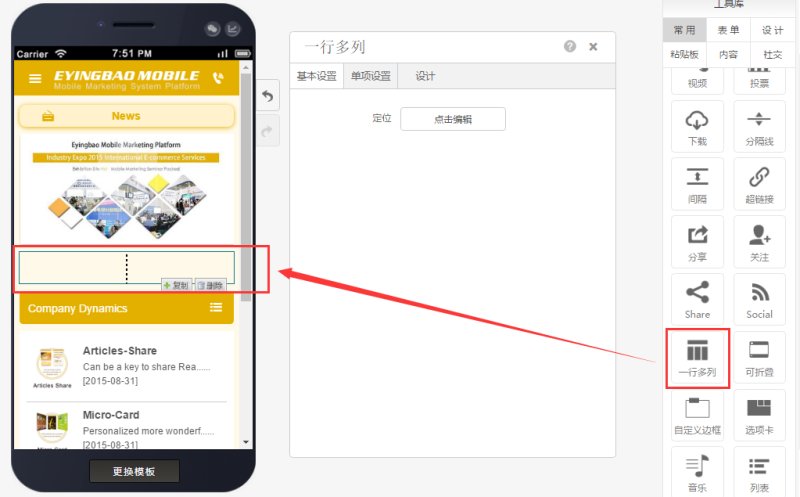 Step 3: Edit the multi-column layout according to your requirements, which can embed other corresponding controls, as shown below: