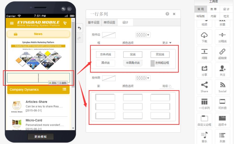 Step 2: Adjust the positioning, borders, and shadows of the multi-column control according to your needs, as shown below: