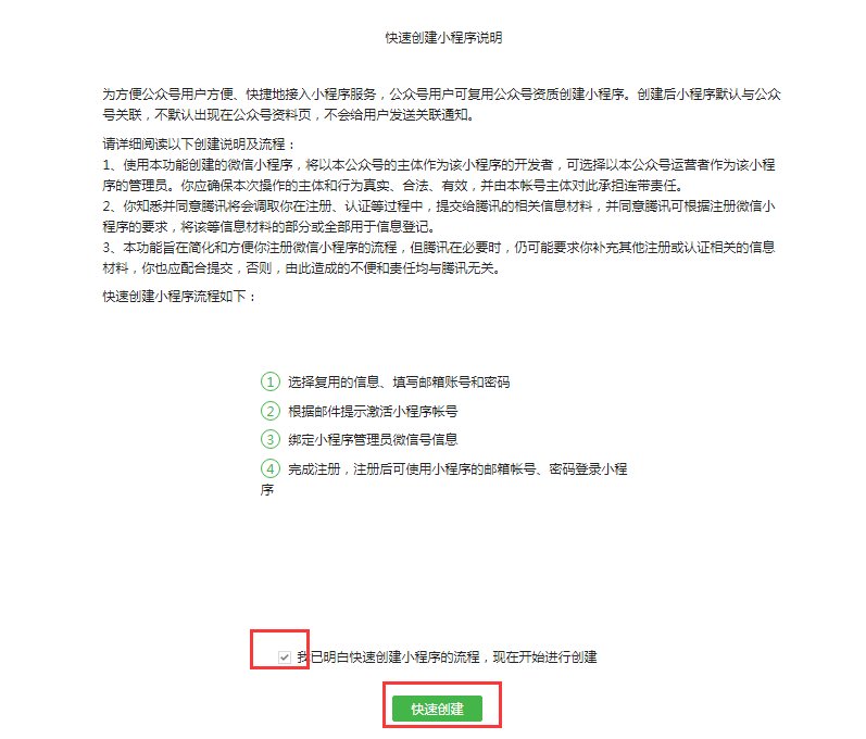 3, Carefully read the Quick Create Mini Program instructions and check "I understand the quick creation process and am ready to proceed", then click "Quick Create"