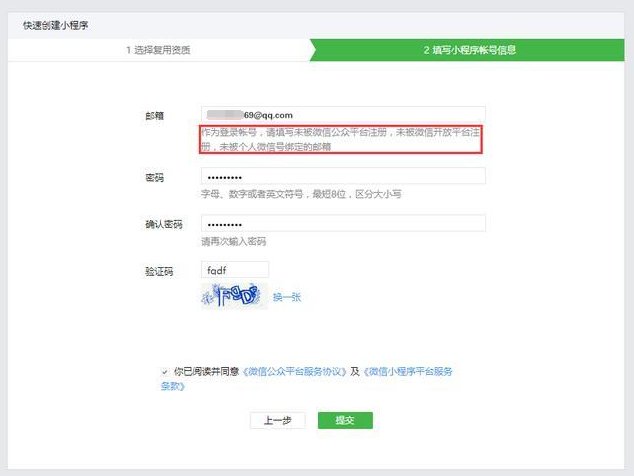 6, Fill in account information (email must not be registered with WeChat Official Account Platform before) and complete email verification