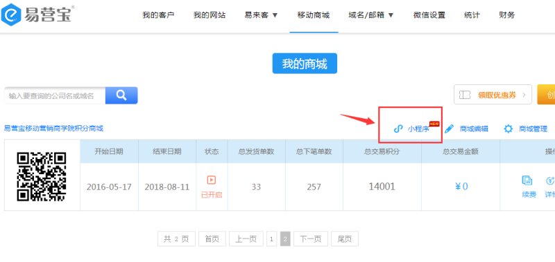 6. In the EYingBao backend mall list, click "Mini Program".