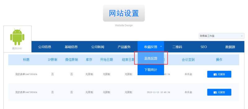 2)应用的表单反馈查看