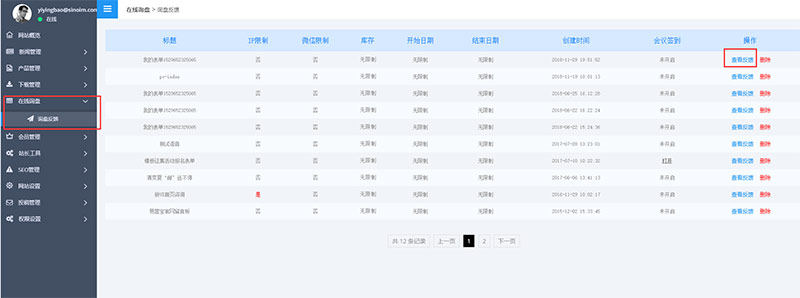 在后台列表里,点击“在线询盘”——“询盘反馈”——“表单反馈”里进行查看