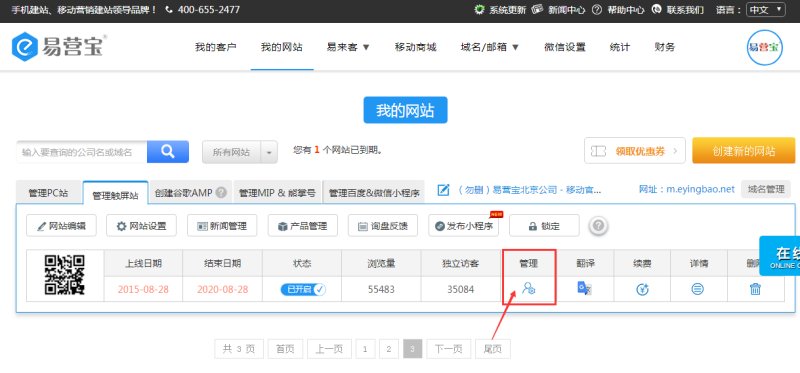 》》①在我的网站列表页,点击管理