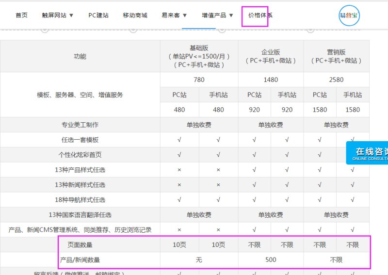 套餐选择“基础版”,页面数量最多为10页。“企业版”和“营销版”,页面数量不限。
