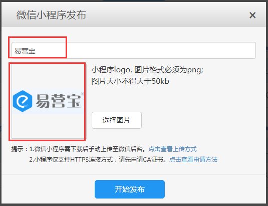 2, 填写小程序标题,上传logo,点击“开始发布”