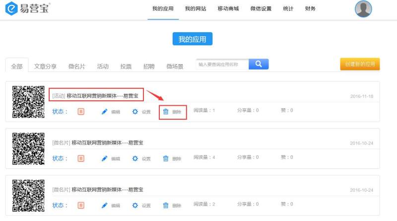 在“我的应用”列表里点击删除键。注:删除后不可恢复。