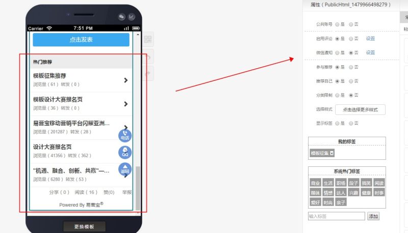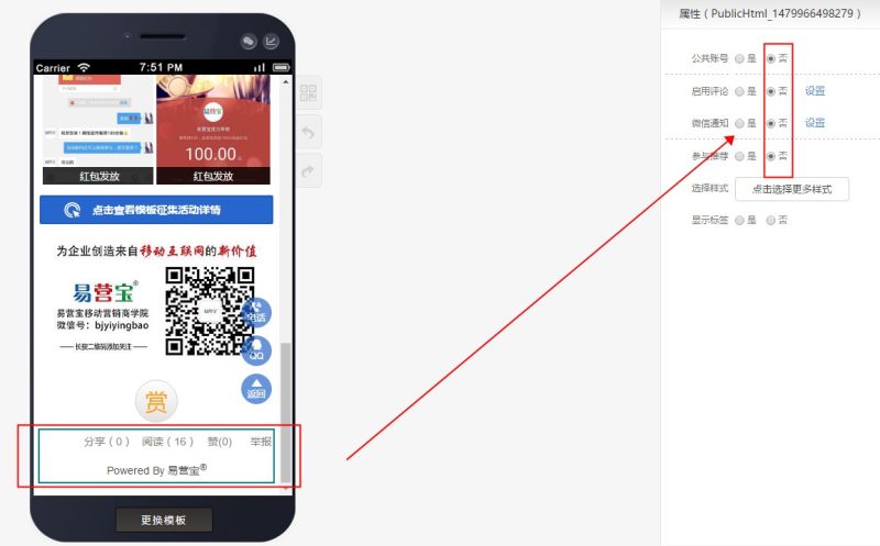 选中底部推荐,在右侧属性中,公众账号和参与推荐选中否即可