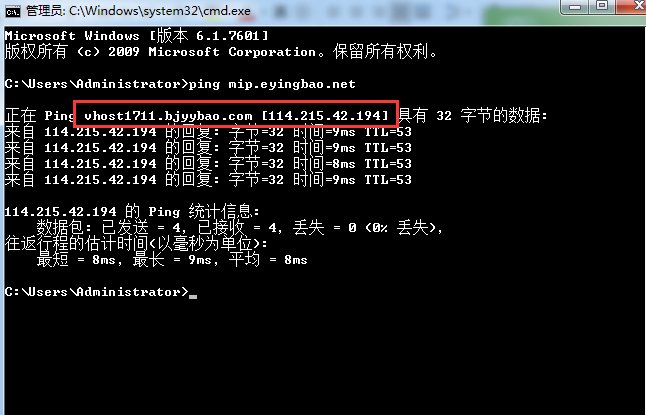 4, 如果解析已经生效,ping后面会显示出解析地址或者IP。如下图。