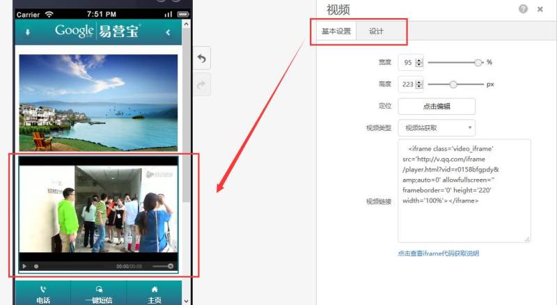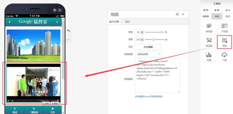 Шаг 2: Выберите тип видео и ссылку: Получение с видео-сайта означает, что видео сначала загружается на видеохостинг (например, Youku, Tencent Video и т.д.), затем универсальный код видео копируется в поле ссылки; Пользовательская ссылка означает, что видео в формате mp4 сначала загружается в веб-пространство, затем ссылка вставляется в поле видео-ссылки. Как показано ниже: